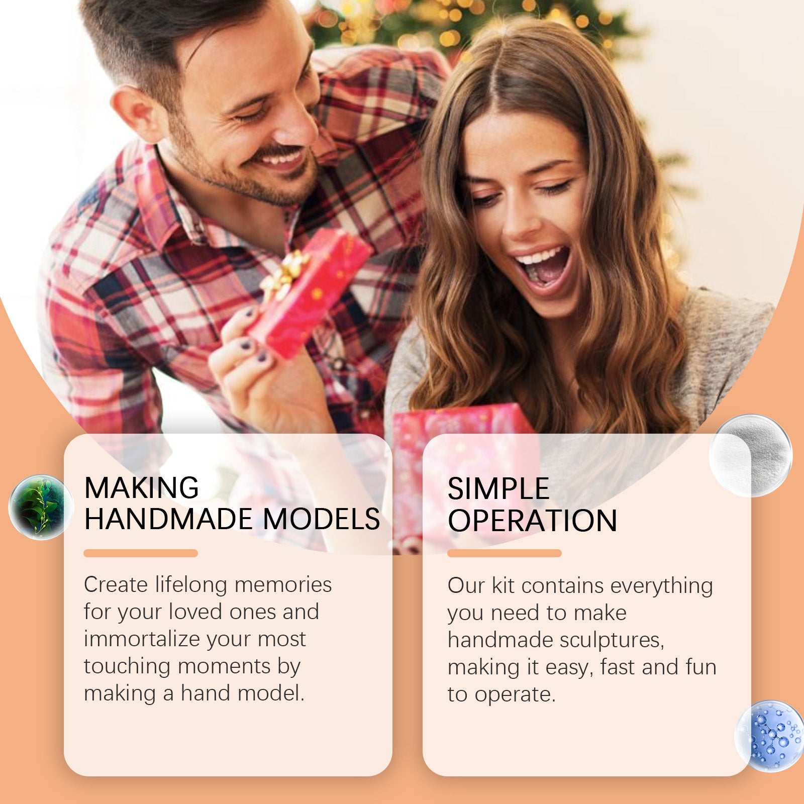 Our 3D plaster model set contains clone powder: seaweed extract, plaster powder; Model powder: binder, retarder. It can immortalize its most touching moments by creating hand-made models that will last a lifetime for loved ones. The way to use it is simple: add the clone powder and water to the container, mix well with a mixing stick, dip your hand into the solution, wait 3-5 minutes for it to change color and set, then gently put your hand out, add the model powder and water to another container, and mix evenly with a mixing stick. Pour the mixture into the prepared mold and gently tap the edges of the container to reduce air bubbles. Wait for the model to set for 30 minutes before peeling off the clone layer using a sharp stick. Once removed, process as needed with sandpaper and mix with gold and silver powder. And can increase feelings and so on.