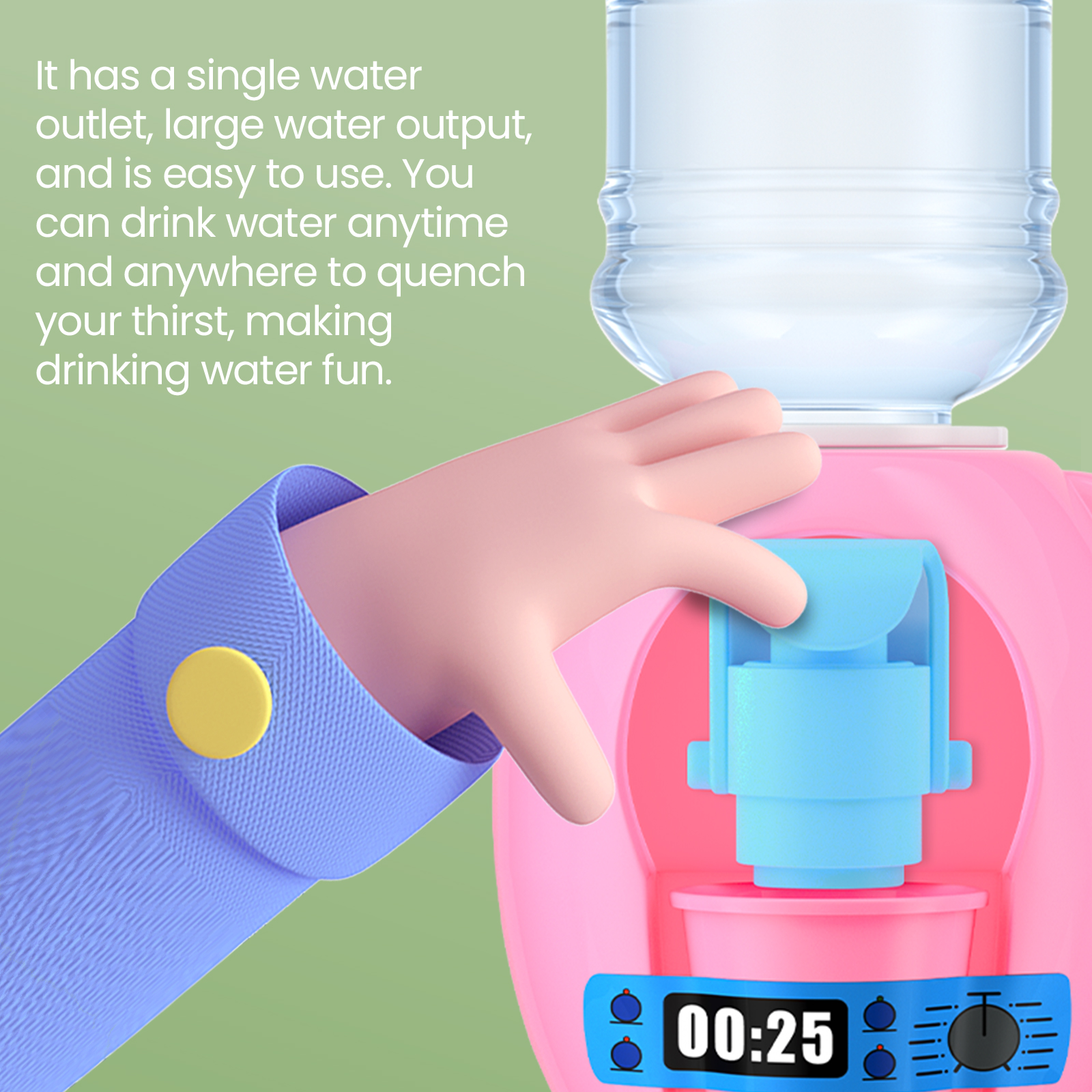Our mini water dispenser for children contains PVC plastic. It can quench its thirst with water anytime and anywhere, making drinking water fun. Its use method is very simple: put the water or drink you want to drink into the tank, cover the lid, install the tank upside down on the water dispenser, and open the tap to receive water. And suitable for parent-child companionship, enhance emotional interaction, can isolate the child drink more water, but also enhance the feelings between parents and children.