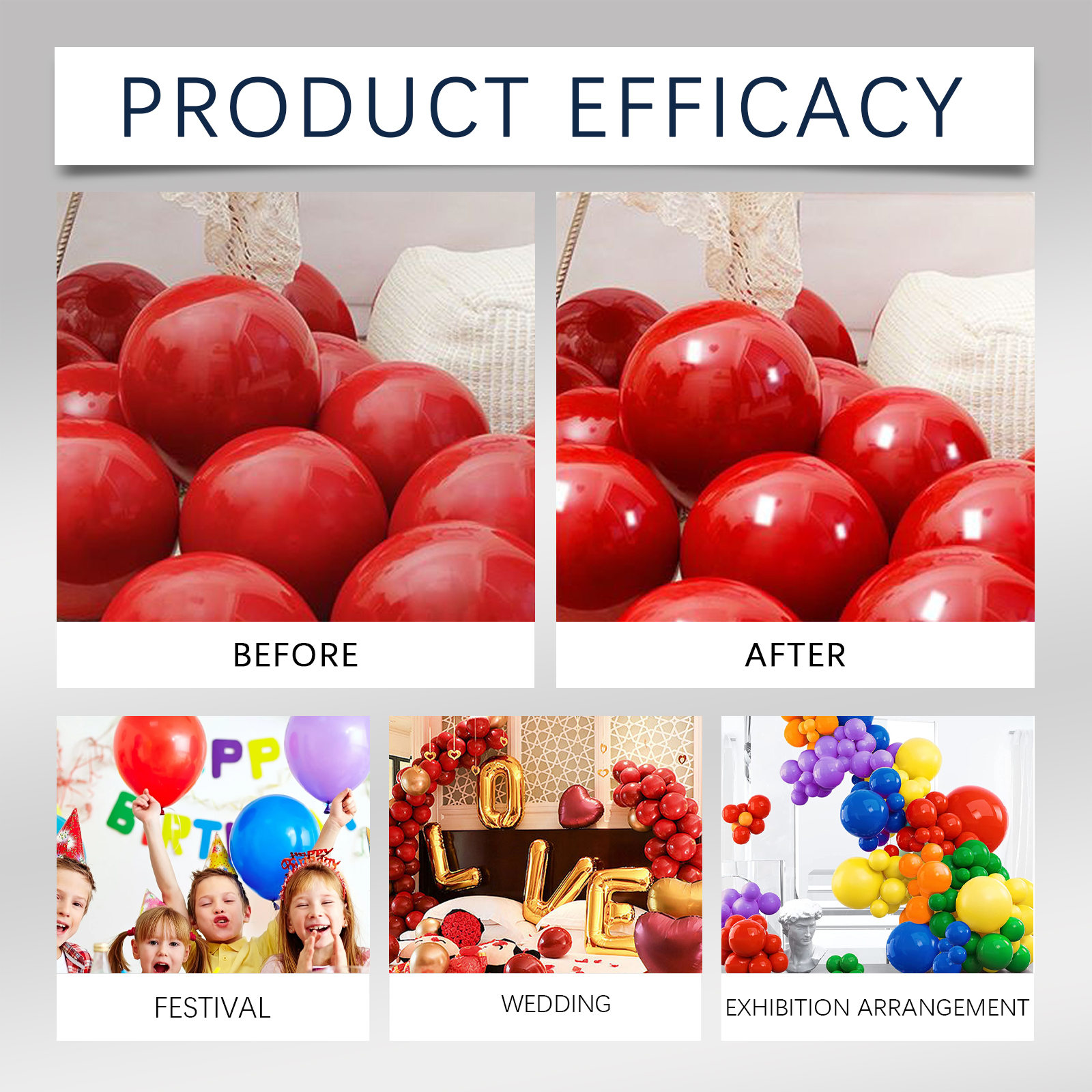 Our latex Balloon Sparkle spray contains polydimethylsiloxane, PEG-40 hydrogenated castor oil. It can effectively illuminate the surface of the balloon and make the balloon look new. Its use is simple: spray the product evenly on the surface of the balloon. And the ingredients are mild and effective, drying fast, saving time and effort.