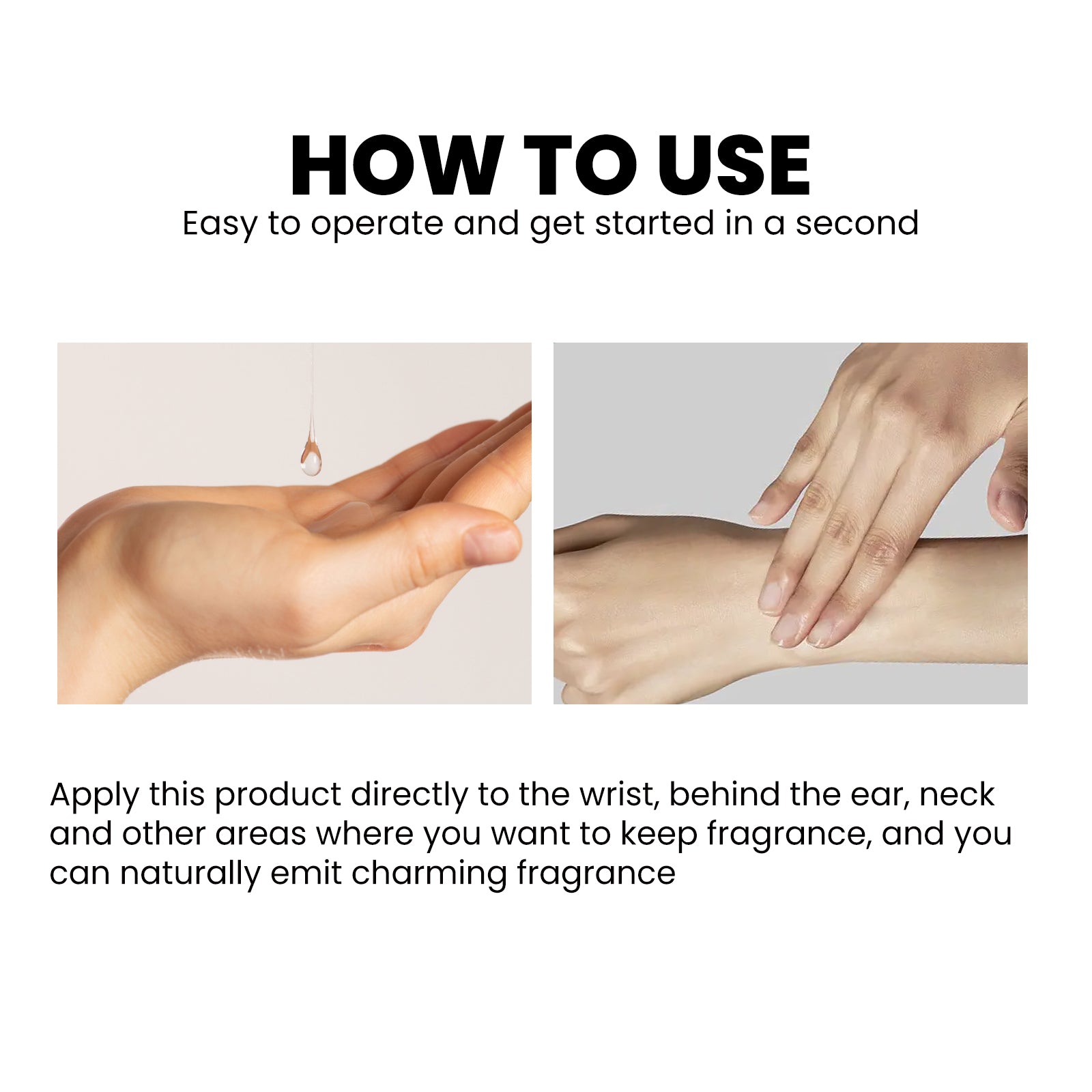 Our concentrated perfume oil contains patchouli oil, vanilla extract and lavender oil. It can have a lasting fragrance, relax the body and mind, show artistic personality, meet various needs, shorten the distance between each other. Its use method is very simple: apply this product directly on the wrist, behind the ears, neck and other parts that want to stay fragrant, naturally can emit a charming fragrance. And it can last forever.