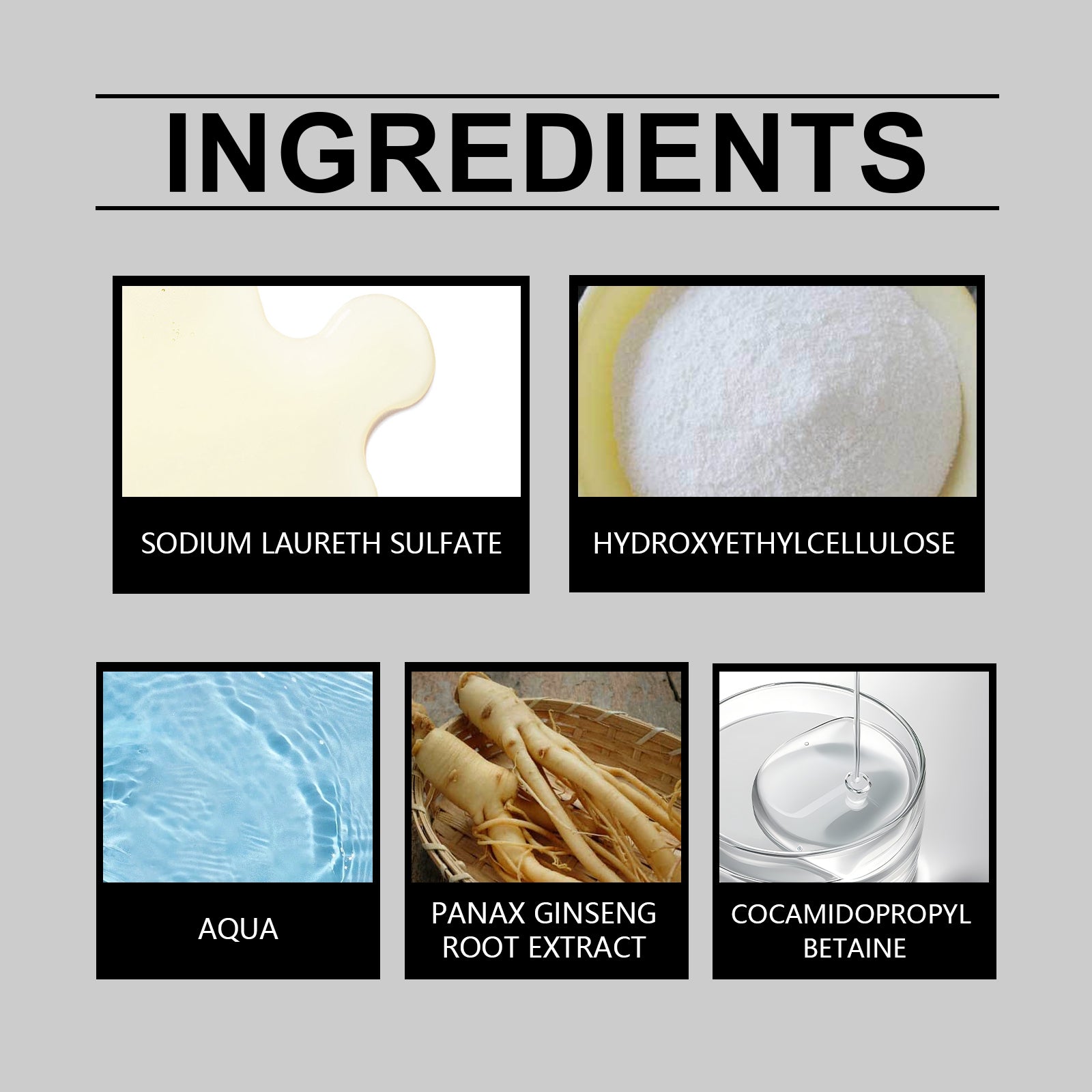 Our hair shampoos contain cocamidopropyl betaine and ginseng root extract. It can deeply nourish the scalp and hair roots, improve hair strength and add shine. The way to use it is simple: make sure your hair is dry before use. Wear protective gear when operating, apply the cream to areas that may come into contact with the skin, such as the face and neck, and rinse hair thoroughly with warm water until the water is clear. And rich in nutrients, repair damaged hair.