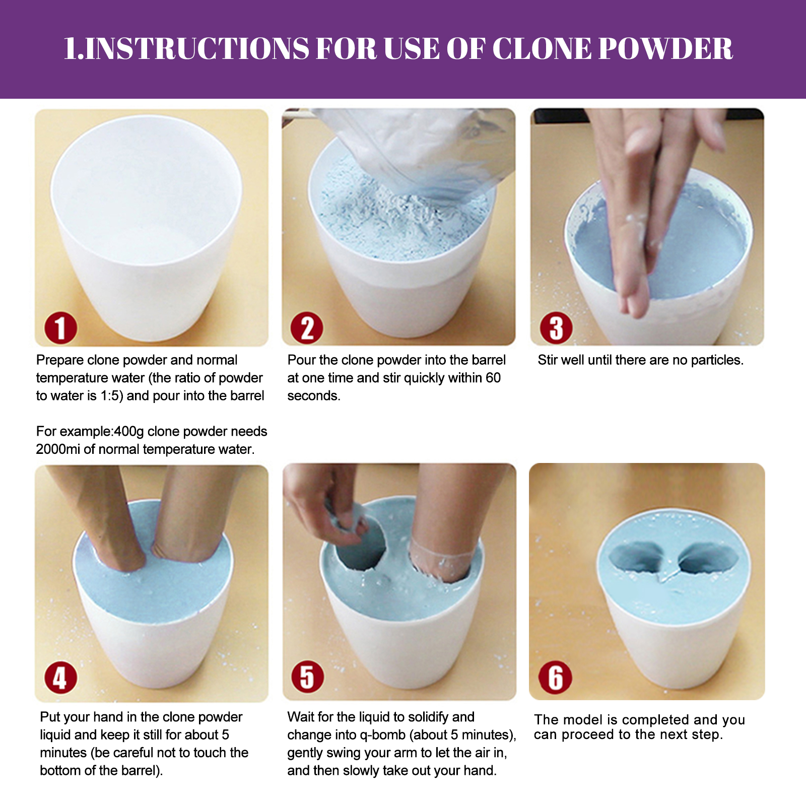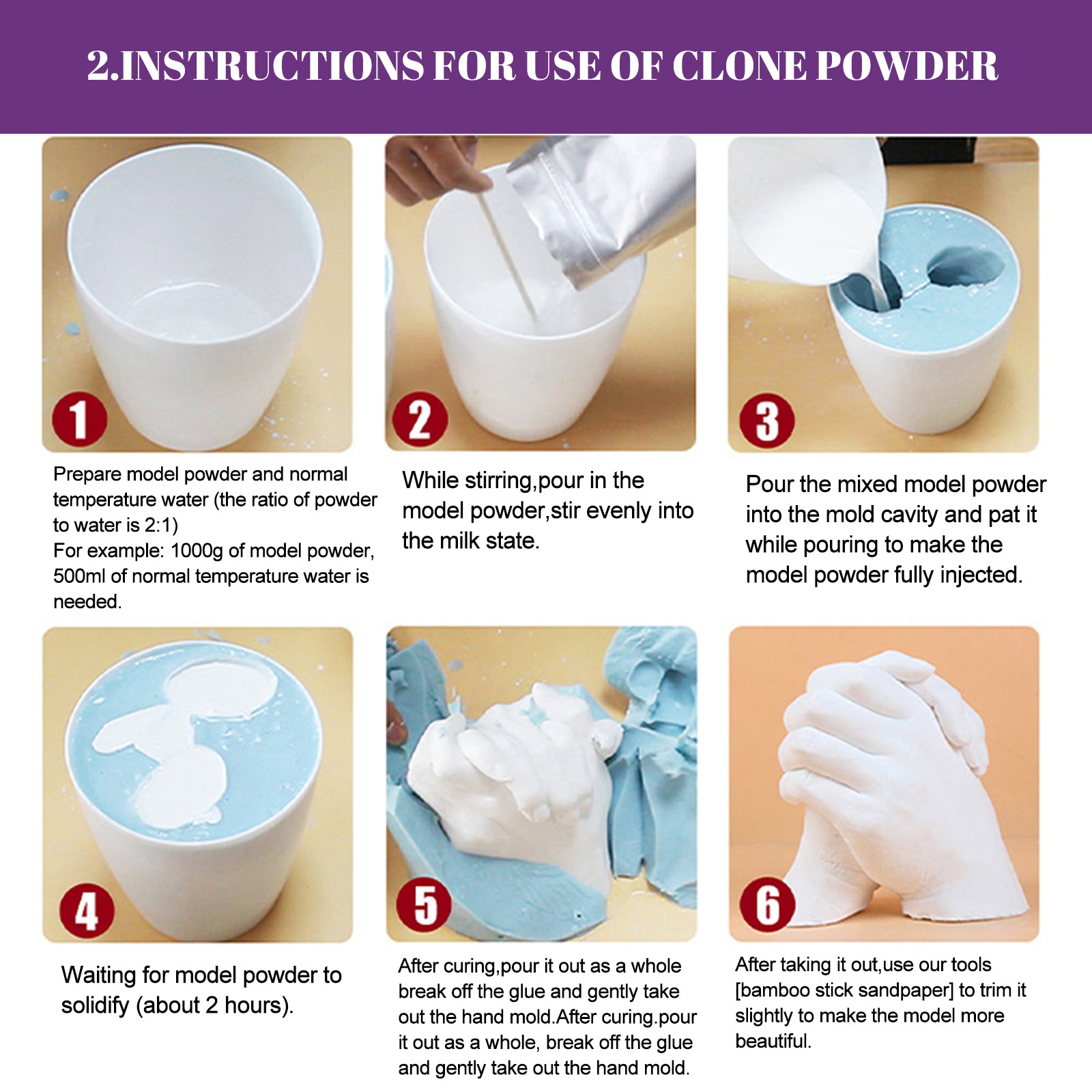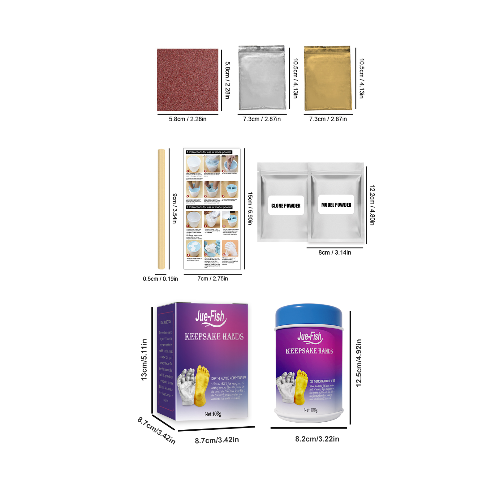 Our baby three-dimensional hand model powder contains sodium alginate. It can plant the seeds of memories when the child is one month old, open the future, and fill the memories with love. Its use method is very simple: 1. Clone powder and a certain proportion of water, model powder and a certain proportion of water prepared in advance to avoid haste 2. The solidification time of clonoid powder is proportional to temperature, and it solidifies quickly at high water temperature. Room temperature water is recommended. If the water temperature is too high, the clone powder solidified too fast, stirring uneven will appear bean curd residue. 3. Remember to apply some body lotion, which will remove air bubbles from the skin, make it easier to unmold, and also care for delicate skin 4. After the colloidal cure of the clone powder, please place it in the colloidal for about 4 and a half minutes, so that the cloning effect will be better. 5. When filling model powder, the speed must be slow. Pour a little bit in. In the case of shaking, you can knock the gas that may be produced on the table. And the three-dimensional touch model can replicate the hands and feet.