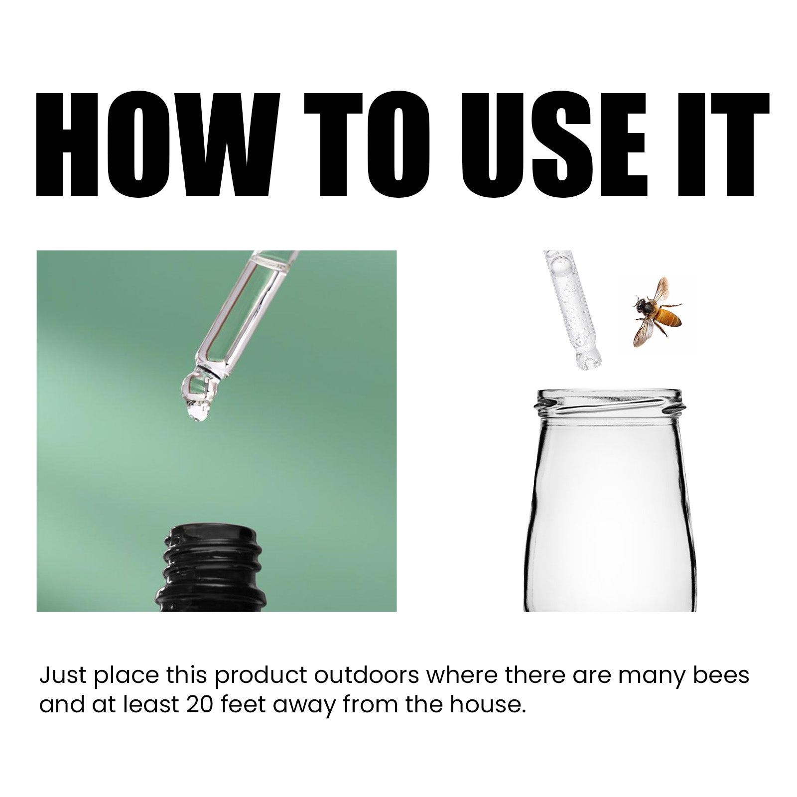 Our bee attractant contains tea extract, sucrose. It can lure bees quickly, easily and quickly, and does not require other complicated operations to attract bees into place. How to use it is simple: just place this product outdoors, where there are many bees, at least 20 feet away from the house. And powerful, with obvious effects.