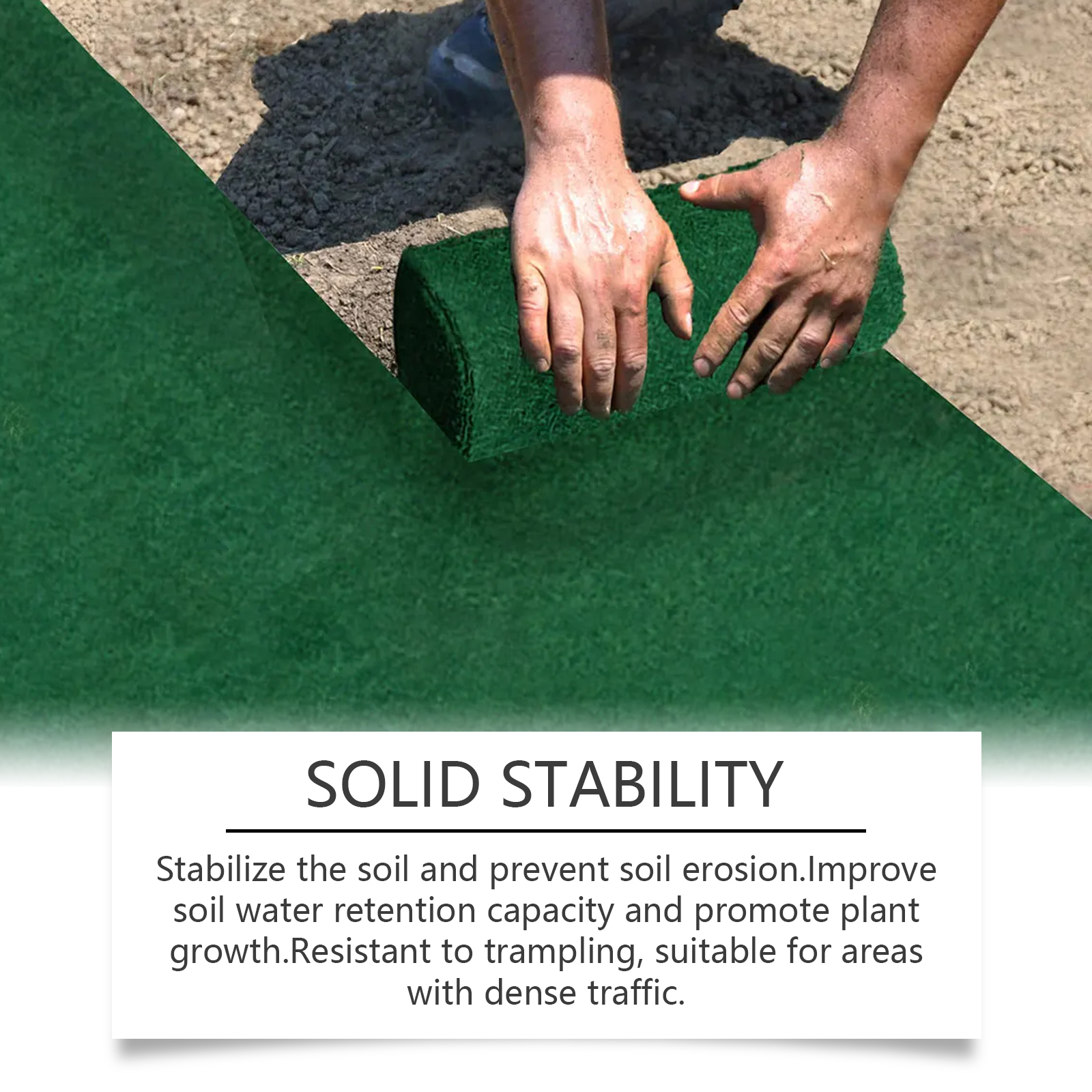 Our green eco-blanket contains synthetic fibres. It can improve soil water retention and promote plant growth. Stampede resistant, suitable for dense traffic areas. Its use is simple: After spreading the mat evenly on the ground, add the seeds and water it. And can inhibit weed growth, reduce maintenance costs. Easily customizable to suit different needs.