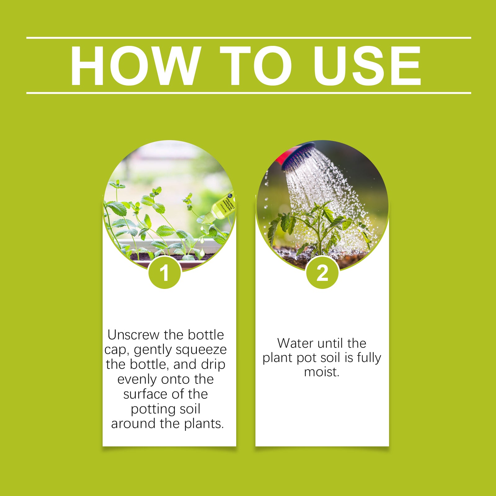 Our indoor and outdoor plant nutrient solution contains highly active benzyl aminopurine, magnesium sulfate complex, and p-chlorophenone. It can help to promote the overall healthy growth of plants and improve plant disease resistance. Suitable for all kinds of indoor and outdoor plants, including flowers, vegetables, leaf plants, etc. All-round care. Its use method is very simple: 1. Unscrew the bottle cap, gently squeeze the bottle, and drop on the surface of the bottle; 2. Water until the soil in the pot is completely moist. Potting soil around the plant. Use safe ingredients, do not contain harmful ingredients, harmless to plants.