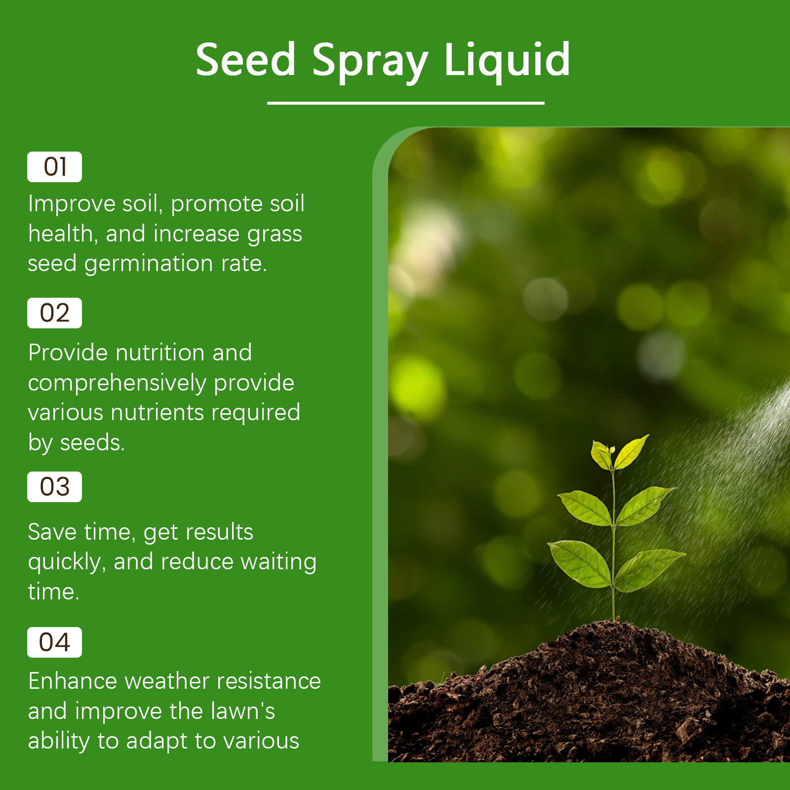 Our liquid lawn green spray contains disodium EDTA, sodium bicarbonate, lauryl ether 7. It significantly speeds up seed germination and allows the lawn to take shape faster. Cover the grass seeds evenly to ensure that each seed gets its nutrients. Its use method is very simple: 1. Remove litter and dead grass before planting. Moisten the soil with water; 2. Mix the product evenly with seeds and water to form a spray solution; 3. Spray the mixture onto the lawn. The 2-in-1 dose, moisturizing and stabilizing agent, allows seeds to germinate better and grow more steadily.