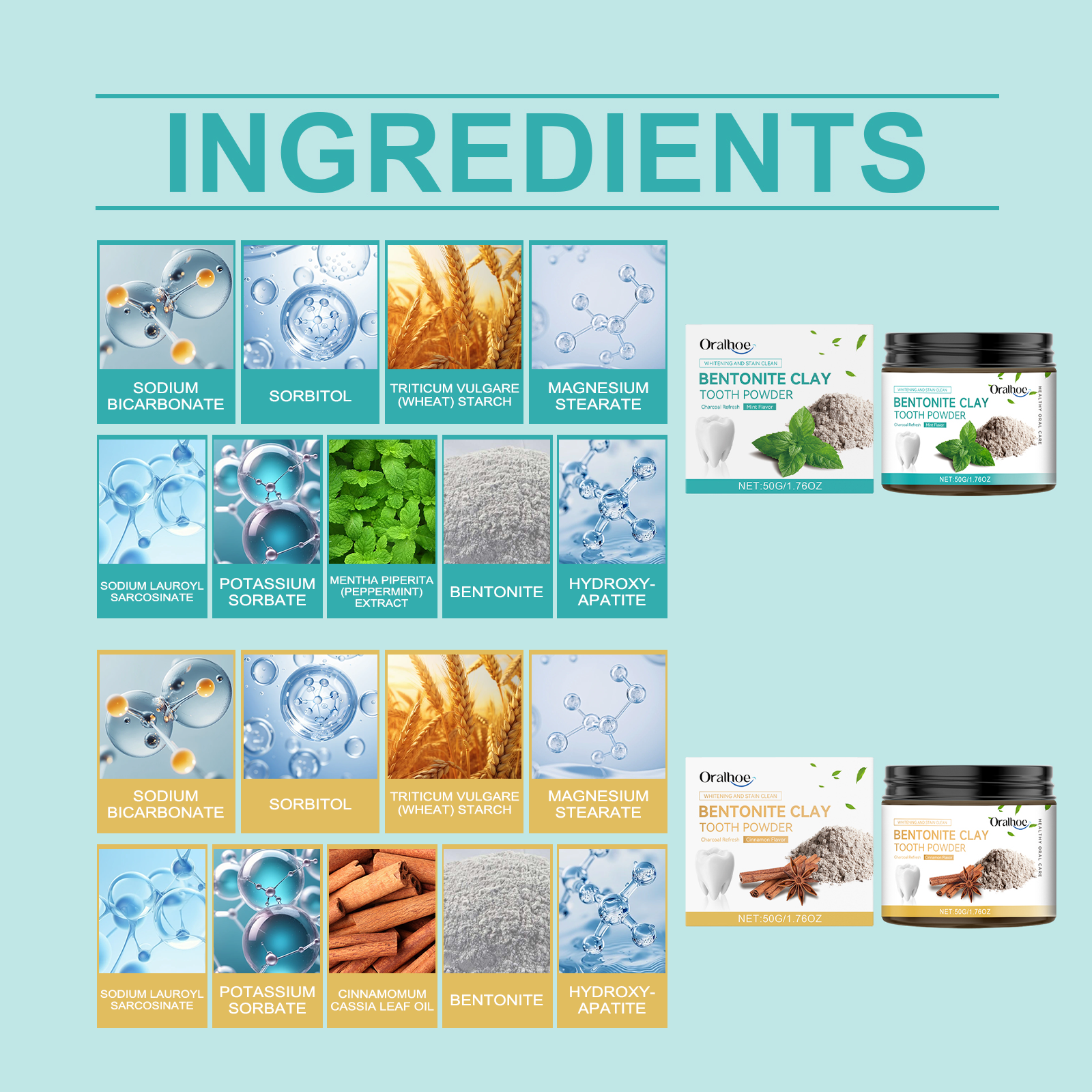 Oralhoe Cinnamon Volcanic Ash Bentonite Dental Powder Teeth Cleaning Dental Powder Tooth Stains to Maintain Oral Environmental Hygiene