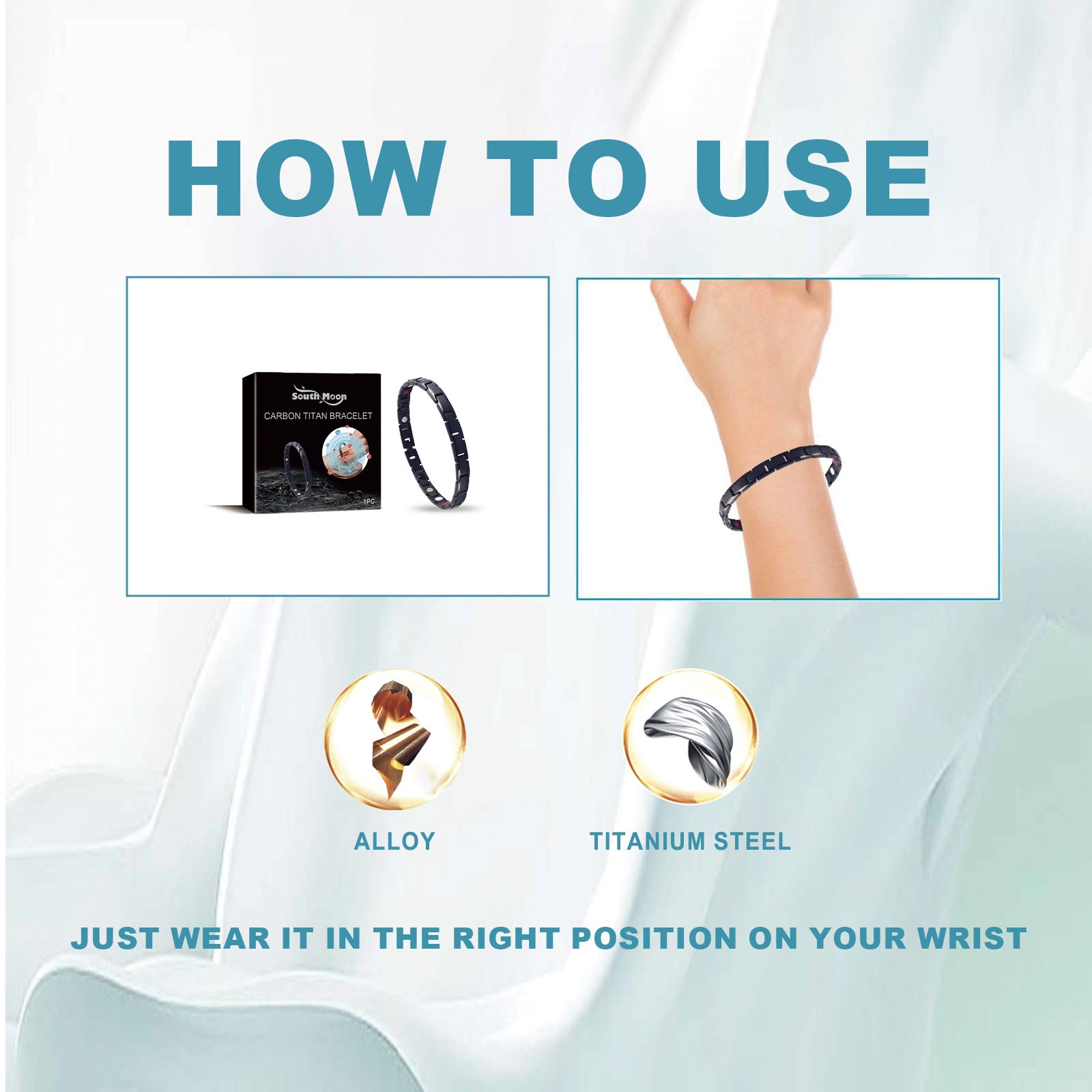 Our titanium steel bracelet contains titanium steel, alloy. It can improve blood circulation, promote the overall health of blood vessels, so that nutrients can be better transported in the body; Promote healthy weight loss. Boost your metabolism and make you healthier. The way to use it is simple: wear it in the right place on your wrist. The titanium steel bracelet uses a unique magnetic therapy to help detoxify the body and prevent blood vessels from blocking.